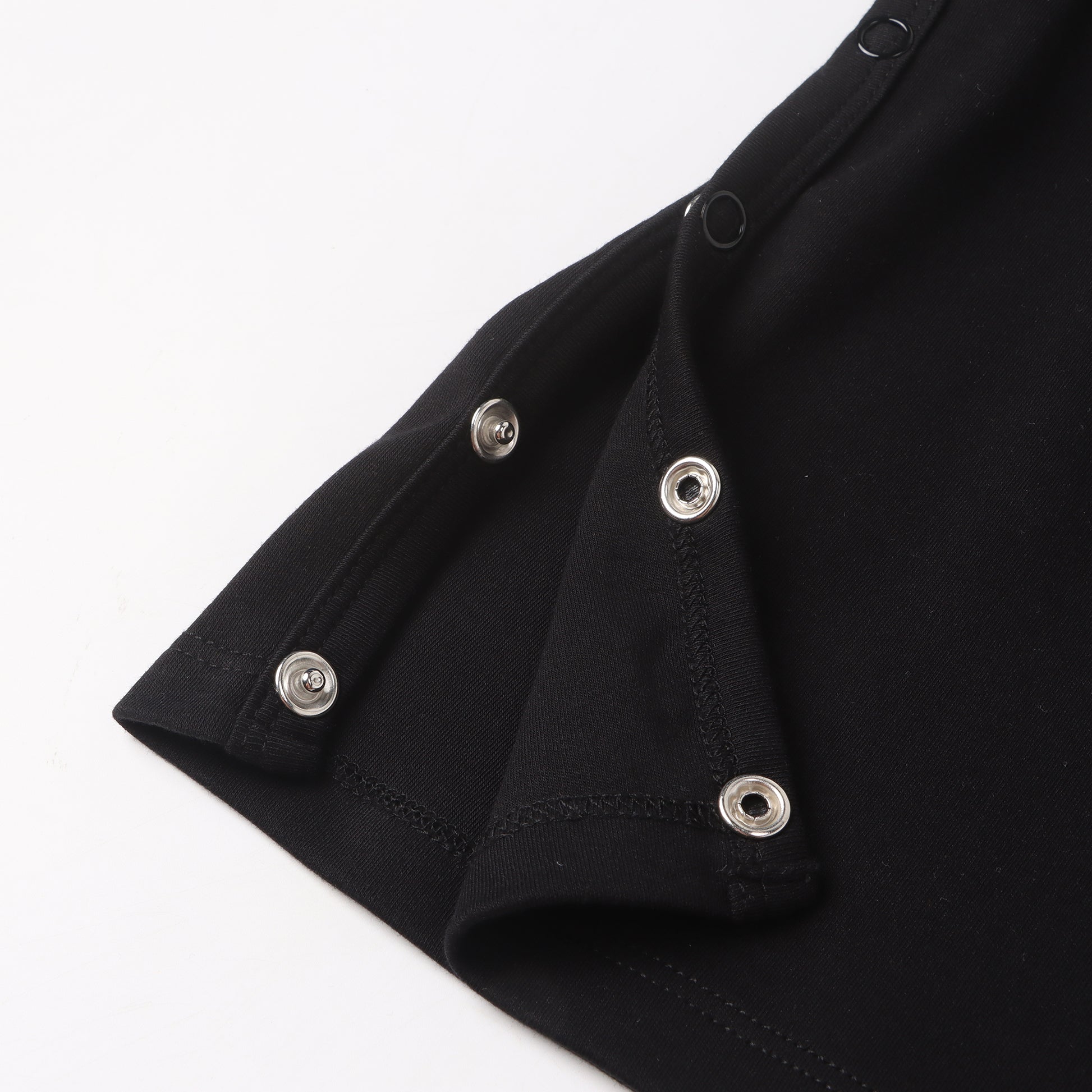 Discreet Full-Side Button Opening: Easy-access side opening with hidden buttons extending from the hem all the way under the arm, allowing for quick and gentle removal of the garment even when attached to a pump.